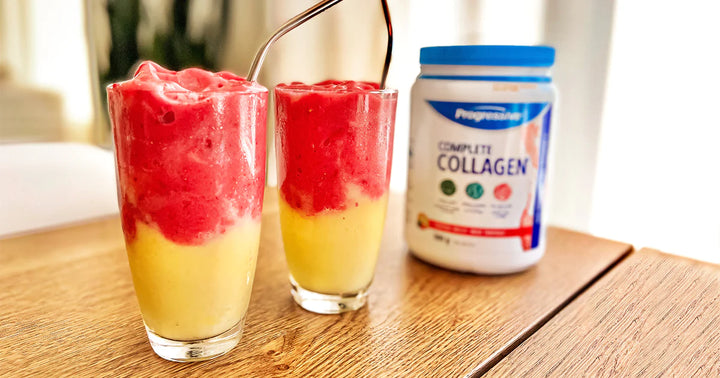 Ce mocktail obtient également un coup de pouce supplémentaire pour la santé en ajoutant le Collagène Complet de Progressive dans une délicieuse saveur de brise tropicale. Saviez-vous que le collagène est la protéine la plus abondante dans le corps humain? La production de collagène diminue également à mesure que vous vieillissez, c’est pourquoi il est très important de compléter.